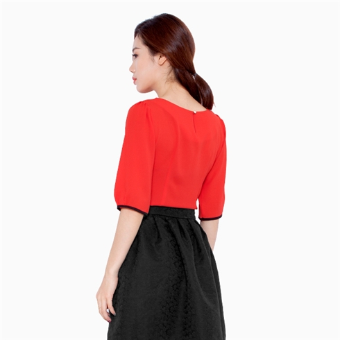 Áo sơ mi công sở tay lở phối nút màu đỏ NQ
